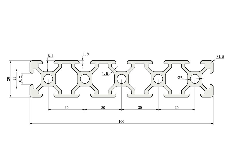 外形采用圓角過渡,表面經(jīng)過陽極氧化處理,高雅美觀并抗腐蝕,通常采用M6X20高強(qiáng)度專業(yè)螺栓加彈性扣件的內(nèi)部連接方式,是工業(yè)鋁型材框架應(yīng)用較為廣泛的型材之一。