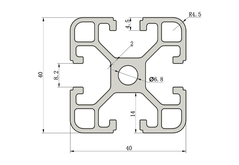 適用于應力及強度較大的框架組合結(jié)構(gòu),它的外型采用圓角過渡,表面經(jīng)過陽極氧化處理,高雅美觀并抗腐蝕,它通常采用M8X20高強度專用螺栓加彈性扣件的內(nèi)部連接方式,堅固而又可靠,是工業(yè)框架應用較為廣泛的型材之一。