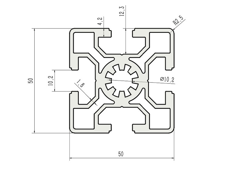 適用于應(yīng)力及強(qiáng)度較大的框架組合結(jié)構(gòu),它的外型采用圓角過渡,表面經(jīng)過陽極氧化處理,高雅美觀并抗腐蝕,它通常采用M12X30高強(qiáng)度專用螺栓加彈性扣件的內(nèi)部連接方式,堅(jiān)固而又可靠,是工業(yè)框架應(yīng)用較為廣泛的型材之一。